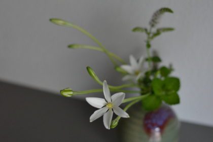 ・水揚げの時に新聞でつつまず斜めに水に入れると、頭が上に上がろうとするので、曲線を描く形状になり、柔らかいニュアンスがでる