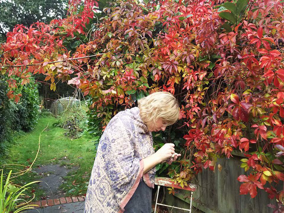 丁度、紅葉していた葉をつみとり、今日はこれも使いましょうと。